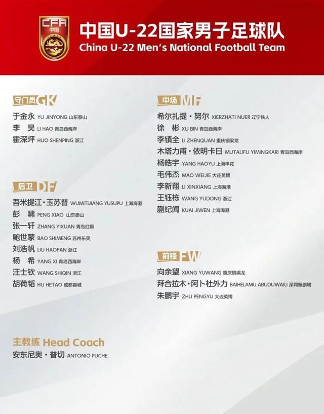 记者鲁蜜报道 U23亚洲杯预选赛将于9月3日在西安开幕,安东尼奥挂帅的U22男足将先后迎战东帝汶、北马里亚纳群岛和澳大利亚,目标是晋级正赛。球队以03年龄段球员为核心,8月29日,中国足协公布了参赛的23人名单,亚泰后卫贺一然、玄智健,石家庄功夫门将栾毅及津门虎中场陈哲宣4人落选。