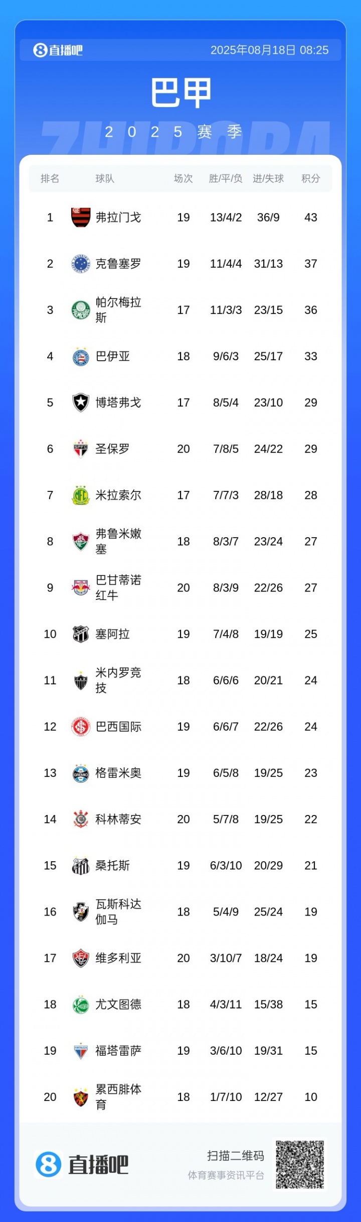 泽维尔带桑托斯15场比赛,战绩为5胜3平7负。桑托斯目前排在巴甲第15,倒数第6位。